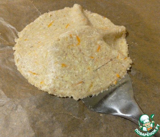 6. Измеряем диаметр нашей формы, добавляем высоту бортиков. Вырезаем круг и при помощи лопатки, переносим в форму. Диаметр моей формы - 11 см.