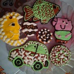 Тесто раскатываем толщиной около 5 мм (если оно липнет, немного подпыляем рабочую поверхность мукой), вырезаем формочками или ножом по трафарету пряники, выпекаем при 175 град. 7 мин. (ориентируйтесь по своей духовке).