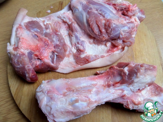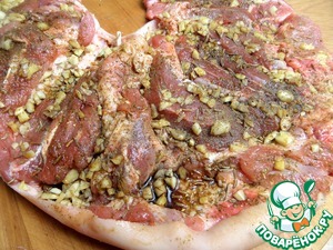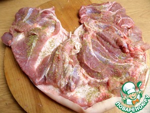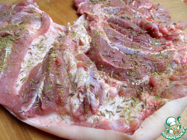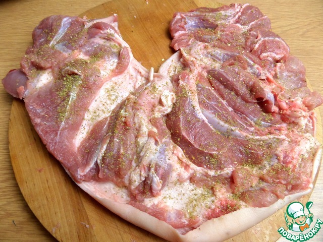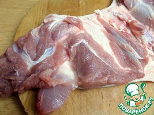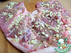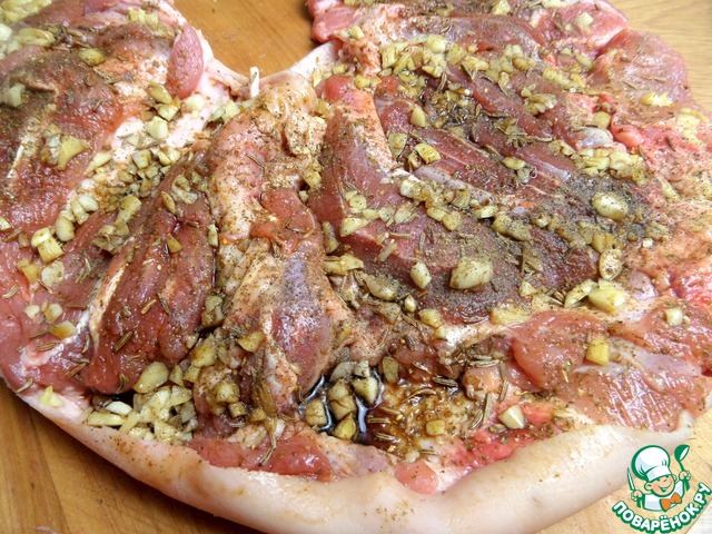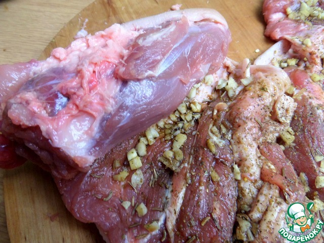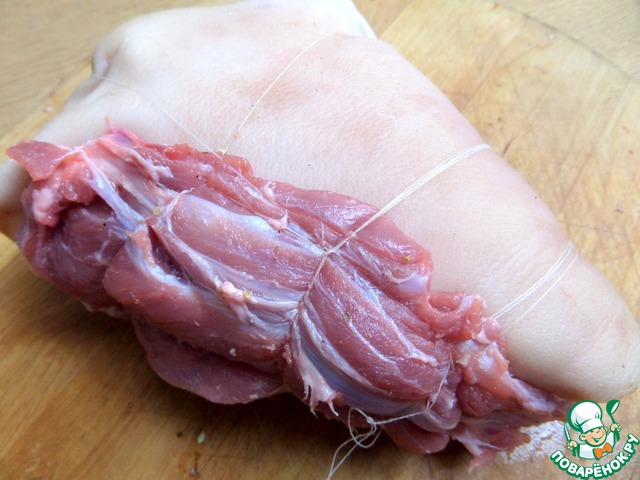Мякоть рульки надрезать и раскрыть книжечкой справа.