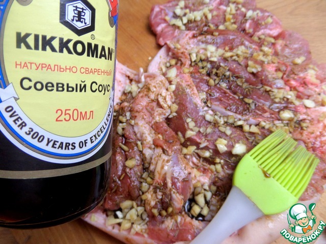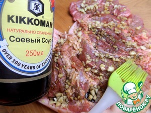 Пропитать соевым соусом "Киккоман" при помощи кисточки.