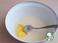 В теплую смесь добавить 1 пакет дрожжей ТМ "Dr. Oetker. Смесь взбить, оставить до полного роспуска дрожжей.