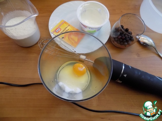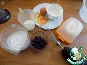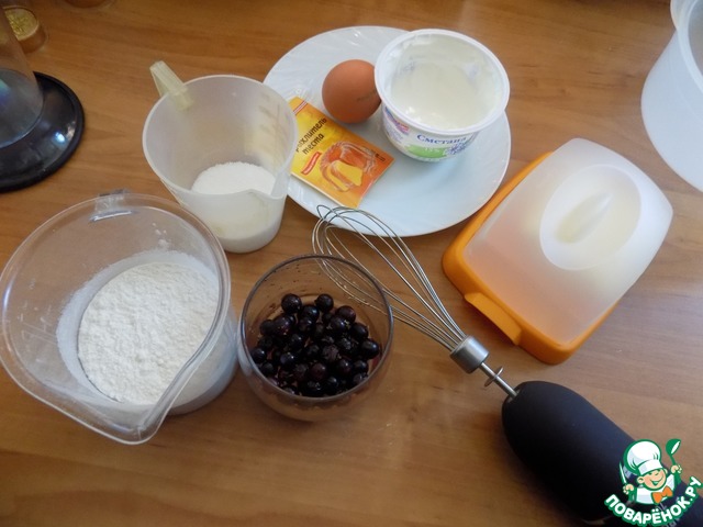 • Берём всё, что нам пригодится для кексов. Сметану и масло нужно заранее достать из холодильника. Смородину разморозить.