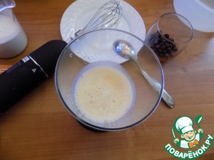Сливочное масло растапливаем и даём немного остыть. Яйцо взбиваем и добавляем сахар, доводим до густой пены.