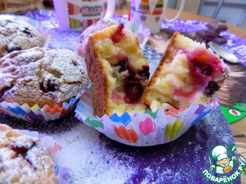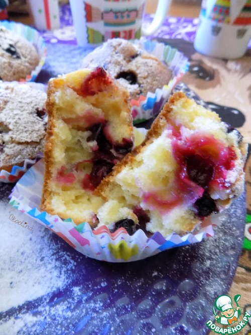 Это первое мое приготовление по рецептам Поваренка! Ваш рецепт стал первым и любимым! Очень вкусно получается! Сегодня я делала кексы с применением свежих ягод, лето на дворе Спасибо за рецепт