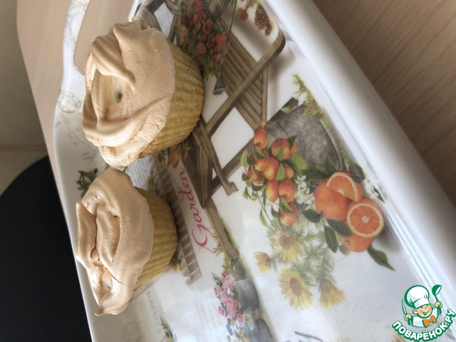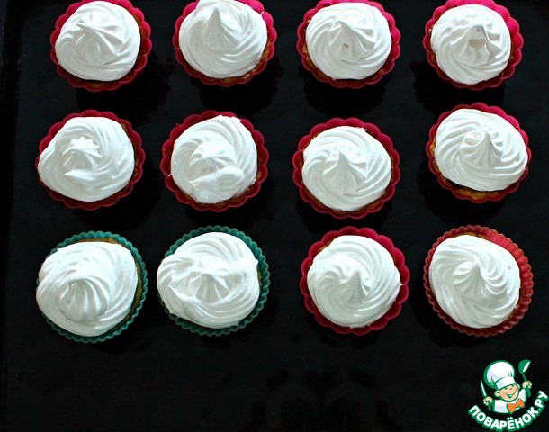 Сверху начинки отсаживаем меренгу, используя кулинарный мешок с насадкой.