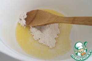 • Тем временем приготовить томатный соус. Для этого в кастрюле с толстым дном растопить сливочное масло, всыпать муки и помешивая прогреть ее, но не зажаривать.