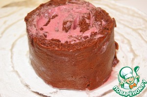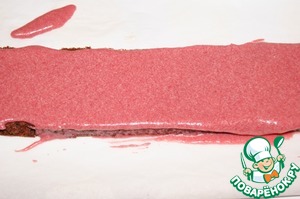 Смазать бисквитную ленту курдом. Скрутить рулетом (осторожно, бисквит очень нежный и лопается!).
