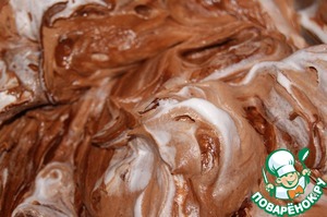 В несколько приемов соединить сливки с шоколадно-желатиновой смесью.