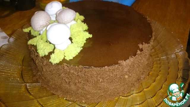 Я долго не могла определиться, как оформить бока. Все решил случай - оставшееся тесто, в которое я добавила 1 ч. л. какао и испекла шоколадные бисквиты, точно также, как и зеленые. Остудила и разломав на куски прошлась по ним скалкой для теста. Получилась замечательная крошка!
