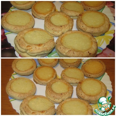 Соедините кружочки попарно. Нижняя часть - цельный круг, верхняя часть - с вырезом. В получившееся углубление выложите творожную начинку