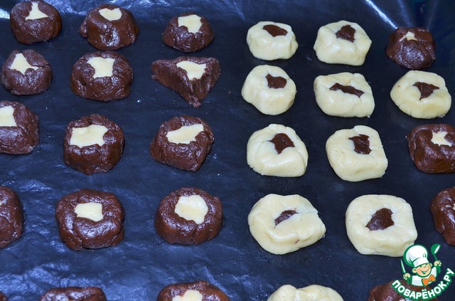 в середину положить 5-7 г. ванильного, сформовать печенье. -