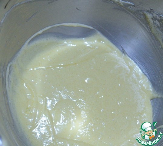 Добавляя по одному, взбивая на средней скорости, ввести яйца.