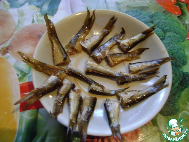 Шпроты (без масла) хорошенько размять вилочкой. Масло не выливать!!!