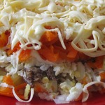 Дорогие мои, родные Поварята! От всей души поздравляю вас с Рождеством! Я понимаю, что блюда к праздничному столу уже готовы. Но я хочу поздравить Вас с праздником этим сытным и интересным рецептом! Я думаю, что вы найдёте ему применение!:)) Подобный есть на сайте, но мой отличается способом приготовления, последовательностью слоёв и подачей! Заходите - угощайтесь!