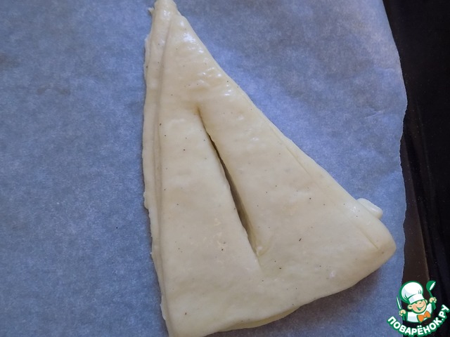Острый конец сектора выворачиваем через прорезь, у широкого края защипываем уголки снизу.