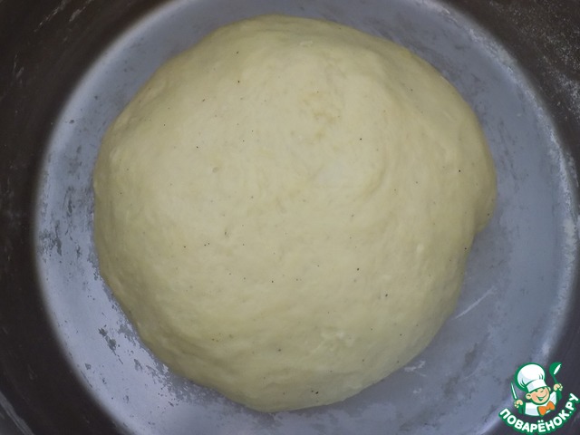 Накрываем наш будущий пирог полотенцем, ставим в теплое место на расстойку примерно на 20-30 минут.