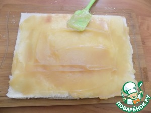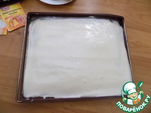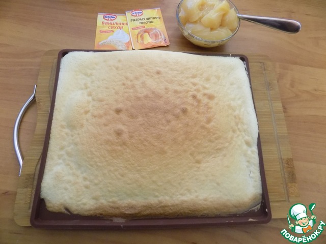 У меня для выпечки рулетов есть силиконовый коврик. Если такового нет, то противень небольшой можно застелить пекарской бумагой. Ставим в разогретую духовку минут на 10.