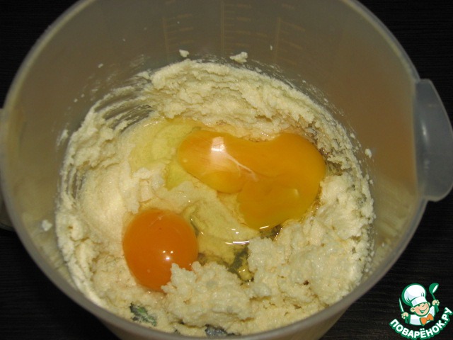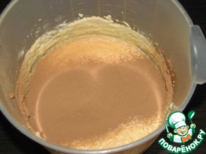Затем просеять муку с разрыхлителем, быстро взбить.