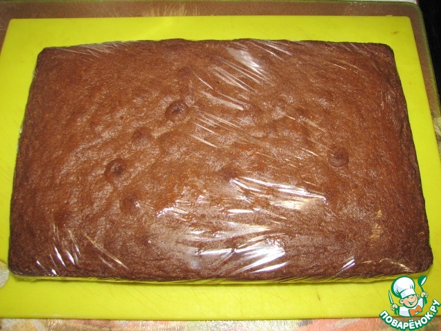 Бисквит вынуть из формы, полностью остудить, завернуть в пленку и убрать в холодильник на минимум на пару часов. -