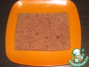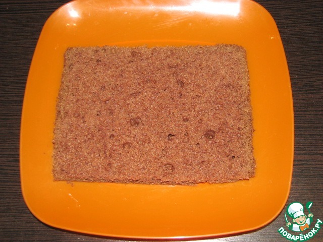 Далее я разрезала бисквит на 4 части (13,5*17) и пропитала сиропом. Можно использовать любую пропитку на Ваш вкус.
