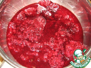 Ягоды выложить в сотейник, добавить 50 мл воды, проварить на медленном огне примерно 5 минут, затем протереть через сито. -