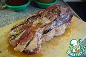 Шейку связать шпагатом и покрыть маринадом. Уложить в рукав для запекания и оставить мариноваться на пару часов.