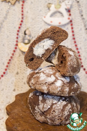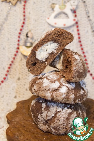 Если спросить у гугла, какое печенье он считает рождественским, то одним из первых результатов будет любимец всего мира "Crinkle Cookie". Невероятно шоколадное, припорошенное тонким слоем снега. Перед его очарованием невозможно устоять. А если внутрь шоколадного снежка завернуть начинку из нежной сливочной рикотты, экзотической кокоса, сочного апельсина или мандарина, получим десерт, который никого не оставит равнодушным. Разлетается мгновенно, хорошо что и готовиться быстро. Потому что просить приготовить еще будут обязательно