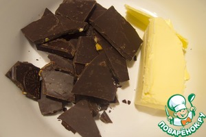 Масло и шоколад помещаем в проверенный сотейник с толстыми стенками и растапливаем на медленном огне, непрерывно помешивая. Если переживаете, что шоколад пригорит - растопите его на водяной бане.
