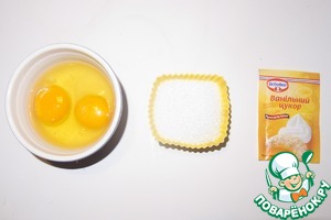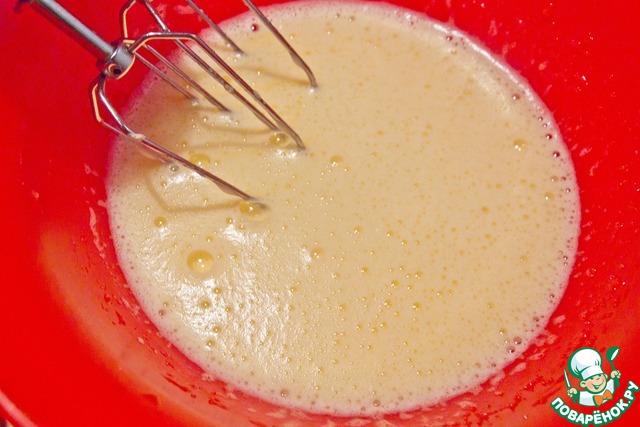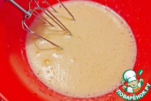 В охлажденные яйца добавляем сахар и взбиваем их миксером добела. Масса при этом существенно увеличиться в объеме