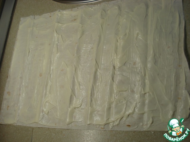 Лаваш смазываем майонезом.