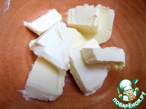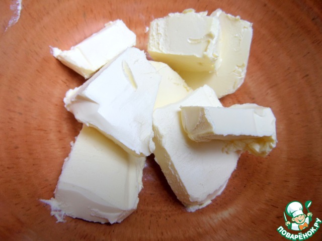 Масло нарезать на кусочки.