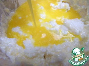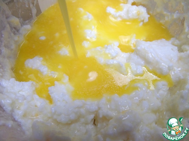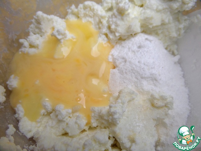 Взбить яйцо, влить в творог.