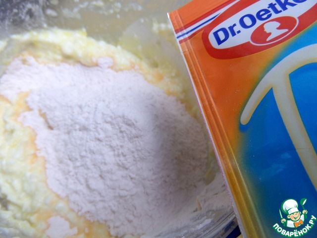 Смешать массу и высыпать пачку пудинга от Dr. Oetker.
