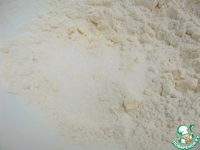Перетереть руками крошку.