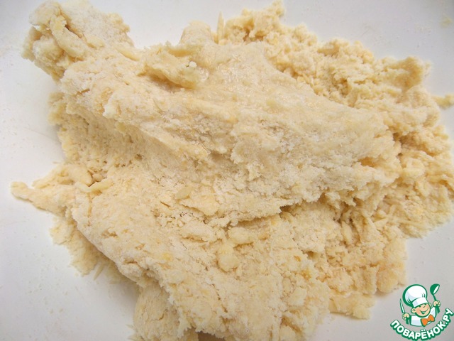 Вливать по ложке холодной воды (или молока или сыворотки) до того момента, пока тесто не начнёт собираться в ком.