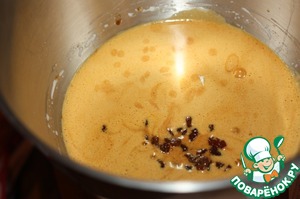 Миксер выключить. Добавить замоченный изюм вместе с алкоголем, если он не полностью впитался. -