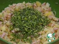В начинку добавить мелко нарезанную зелень по вкусу.