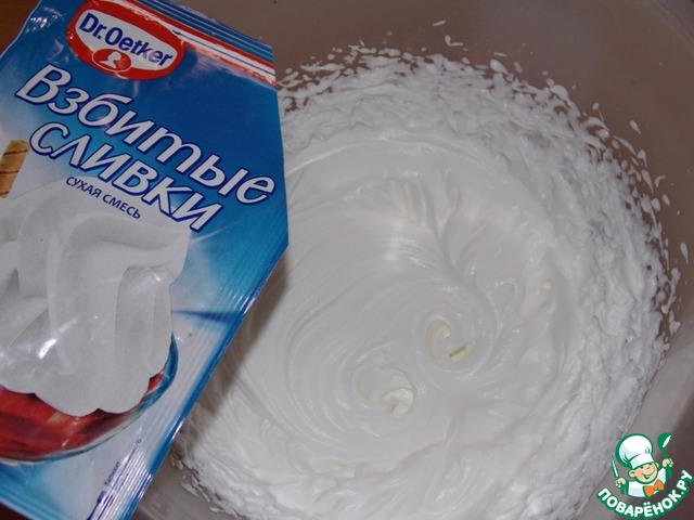 Взбитые сливки приготовить по инструкции.