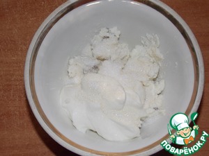 Творожную массу смешать со сметаной и сахаром.