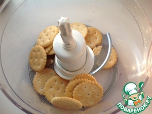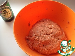 Добавить фарш, репчатый лук и крекеры. Тщательно перемешать и отбить фарш. При необходимости добавить соль и перец.