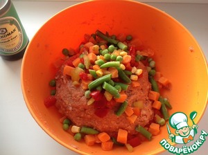 Этот рецепт всегда выручит, когда времени нет совсем, а гости на пороге. Для приготовления нужен только фарш хорошего качества и заранее отваренные овощи. А еще лучше, если в холодильнике лежит смесь замороженных овощей: чем разнообразнее овощи, тем ярче и вкуснее получится блюдо. Особенно рекомендую обратить на него внимание начинающим хозяйкам, так как ничего сложного в его приготовлении нет, а результат гарантирован. Угощайтесь, дорогие Поварята!