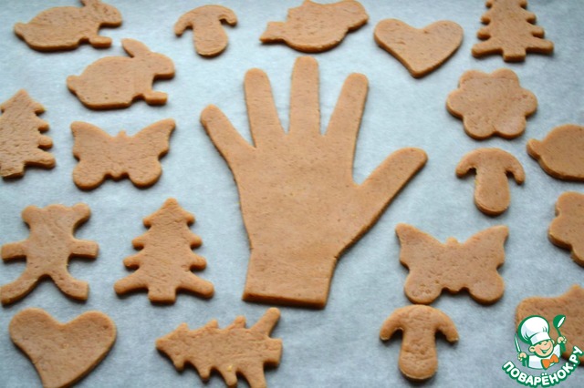 Фигурки перенести на противень, застеленный пекарской бумагой. Можно вырезать сразу на бумаге.