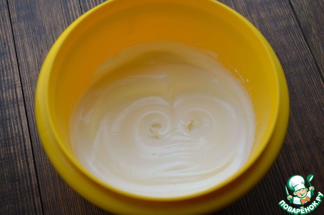 Белок взбить сначала на низкой скорости миксером, затем скорость постепенно увеличивать, добавляя постепенно сахарную пудру, в конце добавить 2-3 капли лимонного сока. Взбивать до оплывающего пика.