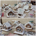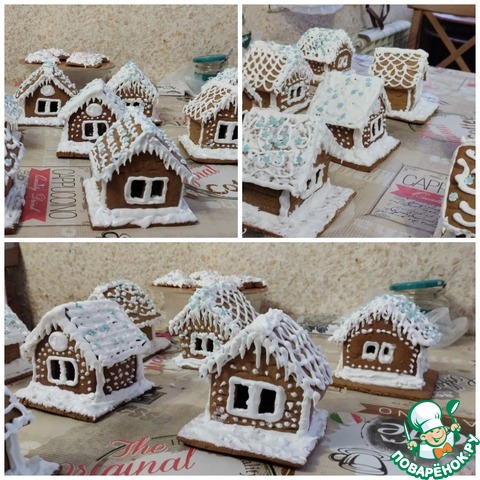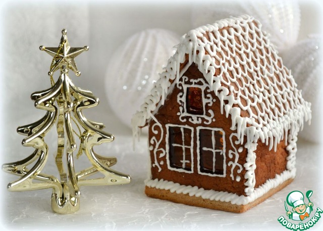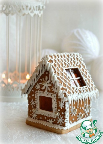 Из бумаги сделать шаблоны деталей домика. Вырезать их из теста и выпечь. Если хотите сделать окошки "застекленными", в отверстия для окон положите по маленькому цветному леденцу. В процессе выпечки он растает и равномерно закроет отверстие.
