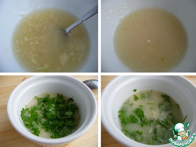 Зелень петрушки (по желанию) измельчить, добавить в заправку.