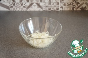 Тонко нарезать лук, помять его, чтобы стал мягким.