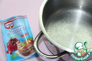 Желатин замочить в воде комнатной температуры, тщательно перемешав, оставить минут на 15-20 набухать.