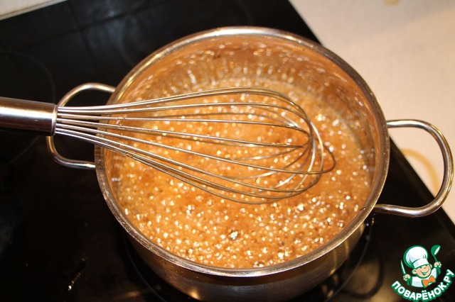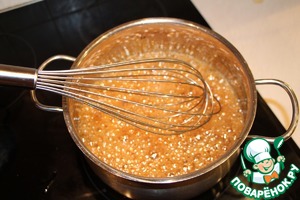 Варить сироп на среднем огне до 110 градусов. У меня нет кулинарного термометра, ориентировалась на время - 7-9 минут.