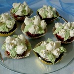 Я украшала капкейки белковым кремом (мокрое безе). Можно использовать взбитые сливки жирностью 33% и более, крем-чиз, любой другой крем, который хорошо держит форму.