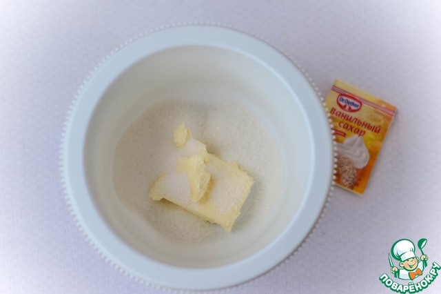 -Сливочное масло комнатной температуры взбить с сахаром, ванильным сахаром Dr. Oetker (1 пакетик), добавить соль. Во одному ввести яйца. Последующее яйцо вводить только после того, как хорошо взбита смесь с первым яйцом.